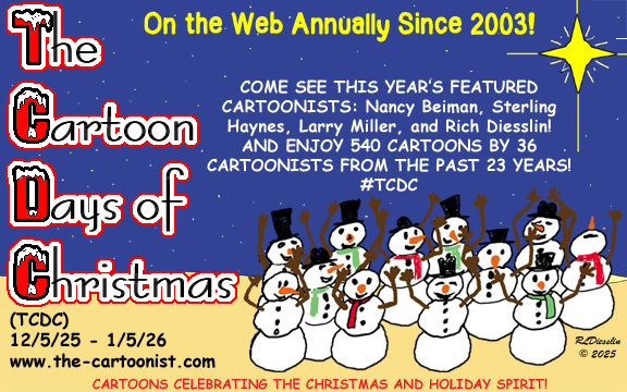 This is our 23nd Annual "The Cartoon Days of Christmas" (TCDC) and we hope that our cartoons will bring a laugh