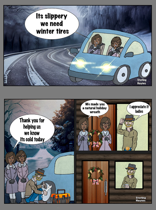 Characters in Winter Tires are Twins Drella & Dreama and Samson.