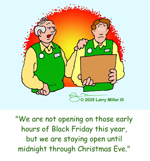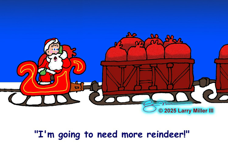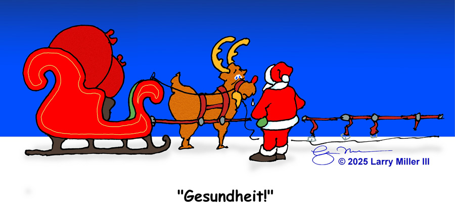 This is our 23nd Annual "The Cartoon Days of Christmas" (TCDC) and we hope that our cartoons will bring a laugh and smile to you even amidst the hustle and bustle of this busy season. We hope you will enjoy these 15 new cartoons for 2025 and our vast library of 525 more holiday cartoons from the previous 22 years!