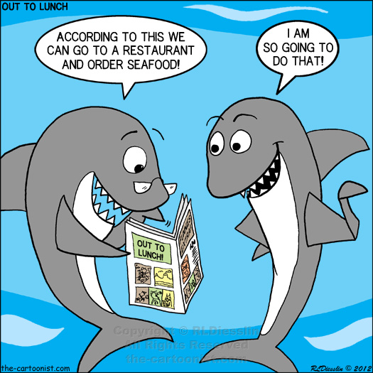 Shark Shopping Sharks and their Relentless Search for Fish (also known as the Supermarket) July 25, 2012 Other Shops Where Our Cartoon Products are Sold: Cafe Press Shops: OutToLunch2 | OTL1 | Knots Scout | Cartoon Gospel Cartoons are available in print resolution in any format. To license use of this cartoon refer to the Detailed Licensing Guidelines or, for your convenience use this Cartoon Licensing Quick List: