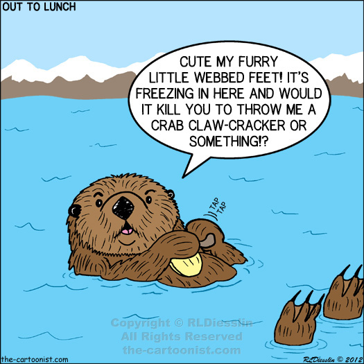 Sea Otter Sour Grapes September 26, 2012 Cafe Press | TeePublic | RedBubble Otter Only: Cafe Press | TeePublic | RedBubble Other Shops Where Our Cartoon Products are Sold: Cafe Press Shops: OutToLunch2 | OTL1 | Knots Scout | Cartoon Gospel Cartoons are available in print resolution in any format. To license use of this cartoon refer to the Detailed Licensing Guidelines or, for your convenience use this Cartoon Licensing Quick List: