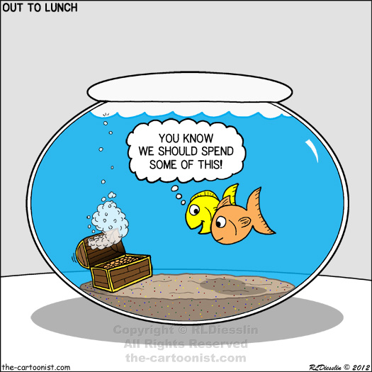 Fishbowl Treasure October 17, 2012 Other Shops Where Our Cartoon Products are Sold: Cafe Press Shops: OutToLunch2 | OTL1 | Knots Scout | Cartoon Gospel Cartoons are available in print resolution in any format. To license use of this cartoon refer to the Detailed Licensing Guidelines or, for your convenience use this Cartoon Licensing Quick List: