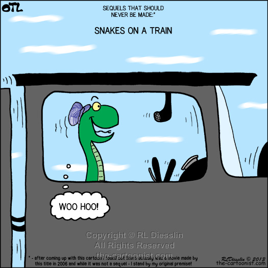 Snakes on a Train March 13, 2013 Other Shops Where Our Cartoon Products are Sold: Cafe Press Shops: OutToLunch2 | OTL1 | Knots Scout | Cartoon Gospel Cartoons are available in print resolution in any format. To license use of this cartoon refer to the Detailed Licensing Guidelines or, for your convenience use this Cartoon Licensing Quick List: