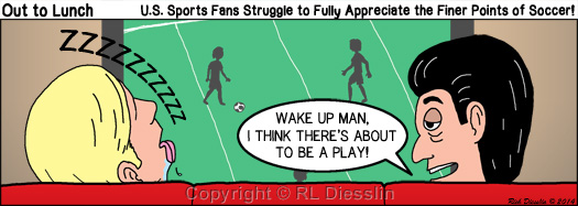 U.S. Sports Fans Struggle to Appreciate the Finer Points of Soccer! July 16, 2014 Keywords: otl, soccer, european foot ball, sports, slow paced Other Shops Where Our Cartoon Products are Sold: Cafe Press Shops: OutToLunch2 | OTL1 | Knots Scout | Cartoon Gospel Cartoons are available in print resolution in any format. To license use of this cartoon refer to the Detailed Licensing Guidelines or, for your convenience use this Cartoon Licensing Quick List: