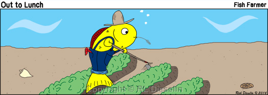Fish Farmer farming a Fish Farm August 20, 2014 Keywords: otl cartoon, Diesslin, fish famer, farm, seaweed, sea, ocean, hoeing Other Shops Where Our Cartoon Products are Sold: Cafe Press Shops: OutToLunch2 | OTL1 | Knots Scout | Cartoon Gospel Cartoons are available in print resolution in any format. To license use of this cartoon refer to the Detailed Licensing Guidelines or, for your convenience use this Cartoon Licensing Quick List: