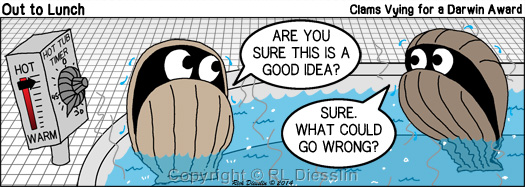 Clam Bake Hot Tub September 24, 2014 Keywords: otl cartoon, Diesslin, Out to Lunch Cartoon, Clam Bake, Hot Tub Other Shops Where Our Cartoon Products are Sold: Cafe Press Shops: OutToLunch2 | OTL1 | Knots Scout | Cartoon Gospel Cartoons are available in print resolution in any format. To license use of this cartoon refer to the Detailed Licensing Guidelines or, for your convenience use this Cartoon Licensing Quick List: