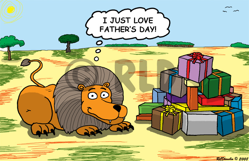 Fathers Day with a lion and his pride Other Shops Where Our Cartoon Products are Sold: Cafe Press Shops: OutToLunch2 | OTL1 | Knots Scout | Cartoon Gospel Cartoons are available in print resolution in any format. To license use of this cartoon refer to the Detailed Licensing Guidelines or, for your convenience use this Cartoon Licensing Quick List: